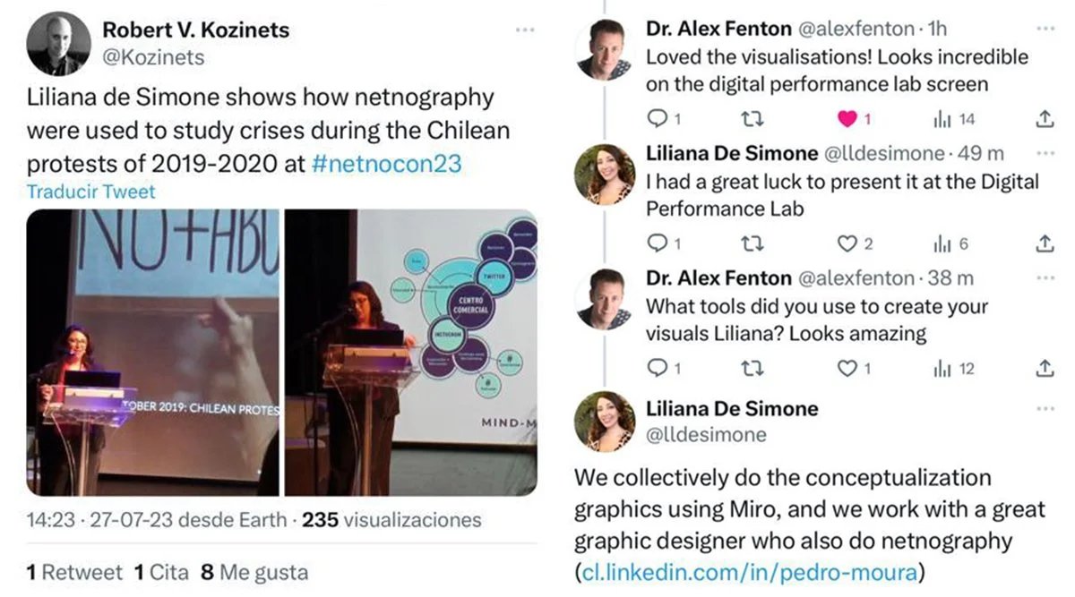 Fue muy importante no sólo tener la oportunidad imperdible de hacer contacto con la red de netnógraf@s articulada por el Prof. Kozinets, desde los principios de su formulación del concepto de Netnografía, pero también la generosidad con que la comunidad académica compartió y validó el trabajo en Visualización de Datos desarrollado por SudLab.